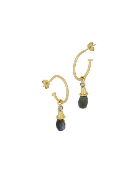 Amazonite & Hematite Drop Earrings in Sculptural Gold
