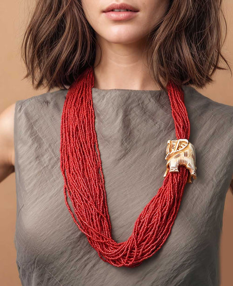 Natural Tones Multi-Layer Wood Beaded Necklace