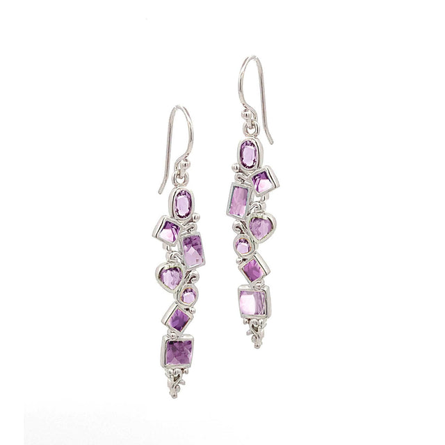 Mixed Geometry Amethyst Sterling Silver Earrings