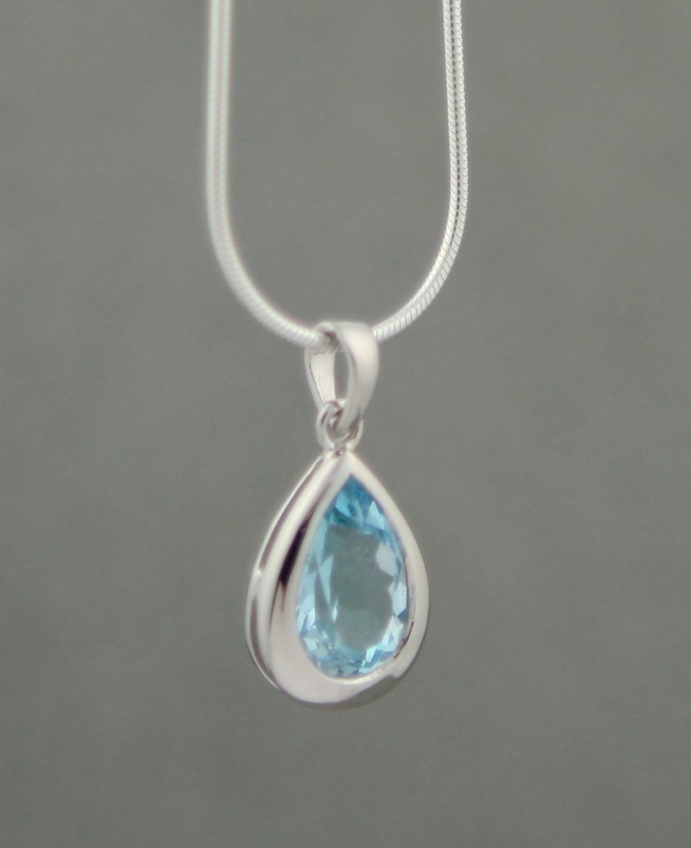 This teardrop pendant of sterling silver features a faceted gemstone for a little bit of color and sparkle. Choose from seven different gemstones. Pendant measures about 0.875 inches long (with bail) and about 0.45 inches wide.