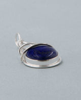 Sterling cord winds its way up this gemstone pendant, creating a unique sculptural effect. Gemstone inlay is 0.625 inches in diameter. Pendant is 0.75 inches wide and 1.625 inches long total. Available in rich purple amethyst, deep blue lapis lazuli, jet-black onyx, and milky moonstone.