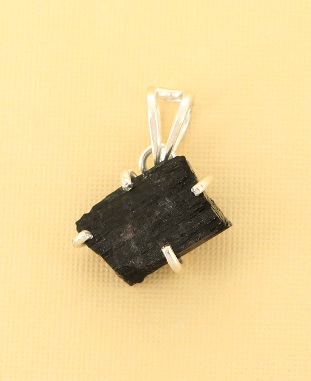 Sterling Silver Raw Cut Black Tourmaline Pendant
