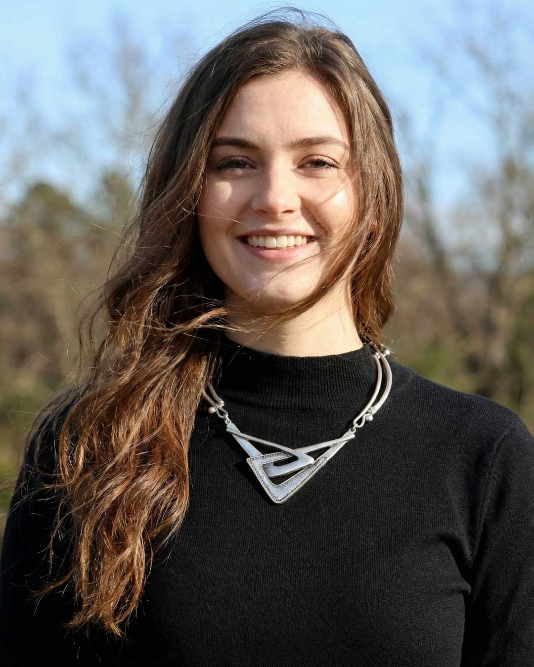 Striking angles and a sense of movement define this architectural piece. Handcrafted in Türkiye, this sculptural necklace plays with negative space and texture, creating a dynamic focal point that feels both ancient and avant-garde.